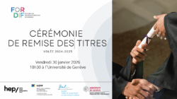 Nous avons le plaisir de vous convier à la cérémonie de remise des titres de la FORDIF qui se tiendra le vendredi 30 janvier 2026 dès 18h30 à l’Université de Genève.